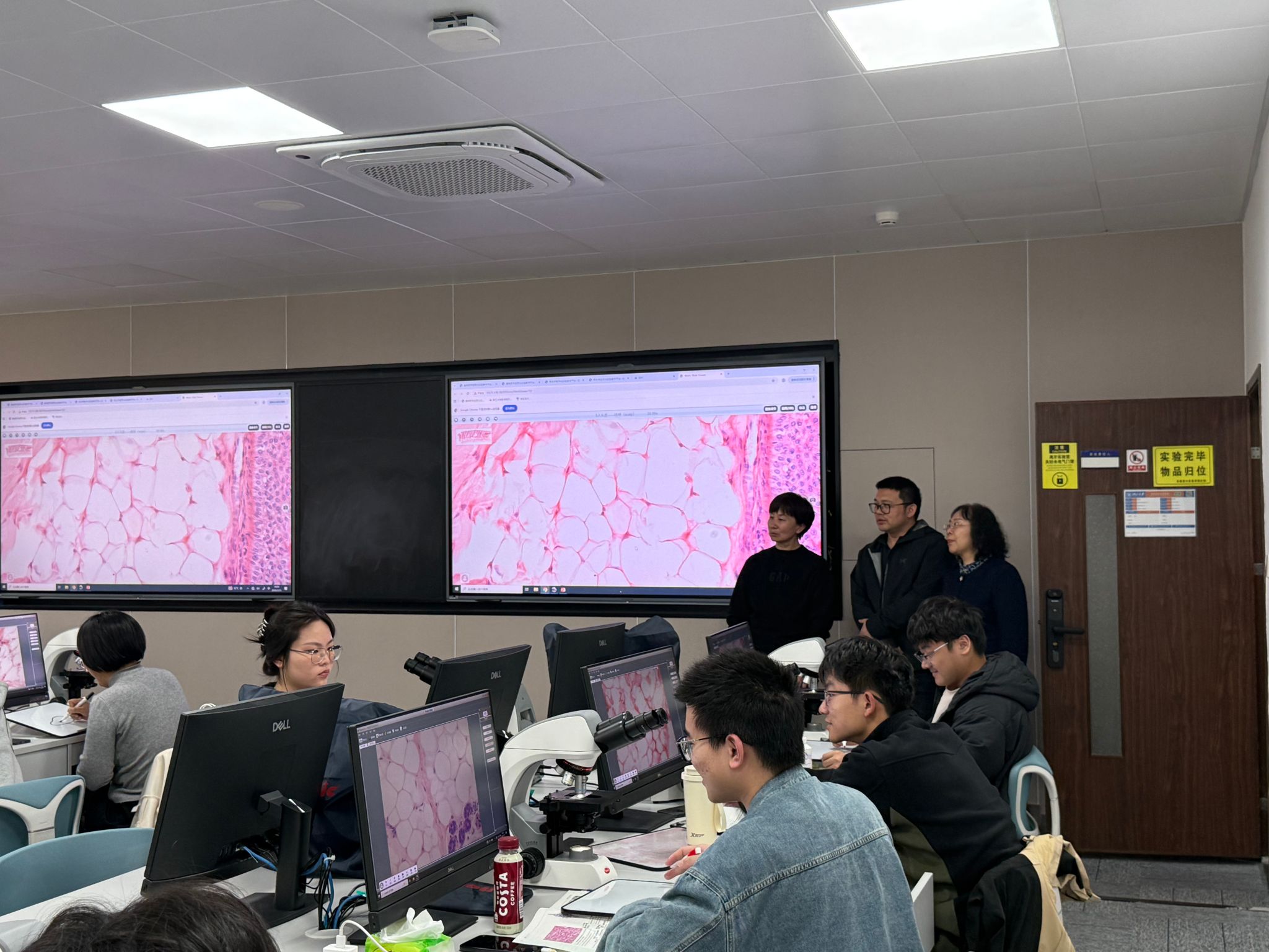 座谈会上,楼建晴对王晓荣一行的到来表示热烈欢迎,并围绕人才培养、师资队伍建设、学科平台搭建、国际化办学等重点工作展开详细介绍,重点分享了本科教学课程体系构建、课程质量提升等方面的特色做法与实践成效。王晓荣对楼建晴的全面分享致以衷心感谢,简要介绍了吉林大学基础医学院的创建历史、办学规模、学科布局及发展定位等情况。她表示,两院在本科生培养规模、学科体系设置等方面具有较高的相似性。此次调研的核心目的,就是深入学习浙江大学基础医学院在人才培养与管理领域的成熟经验,为学院相关工作的完善优化提供有力参考与借鉴。随后两院在人才引进、导师双聘、课程思政案例、学生互访交流、国际化办学、党建联建及校园文化互通等八个方面开展了深入交流。座谈会后,王晓荣一行实地参观了浙江大学医学院基础医学实验教学中心,通过现场交流,详细了解了该中心的实验课程设置、智慧实验室升级改造、教学平台运维管理等具体情况。