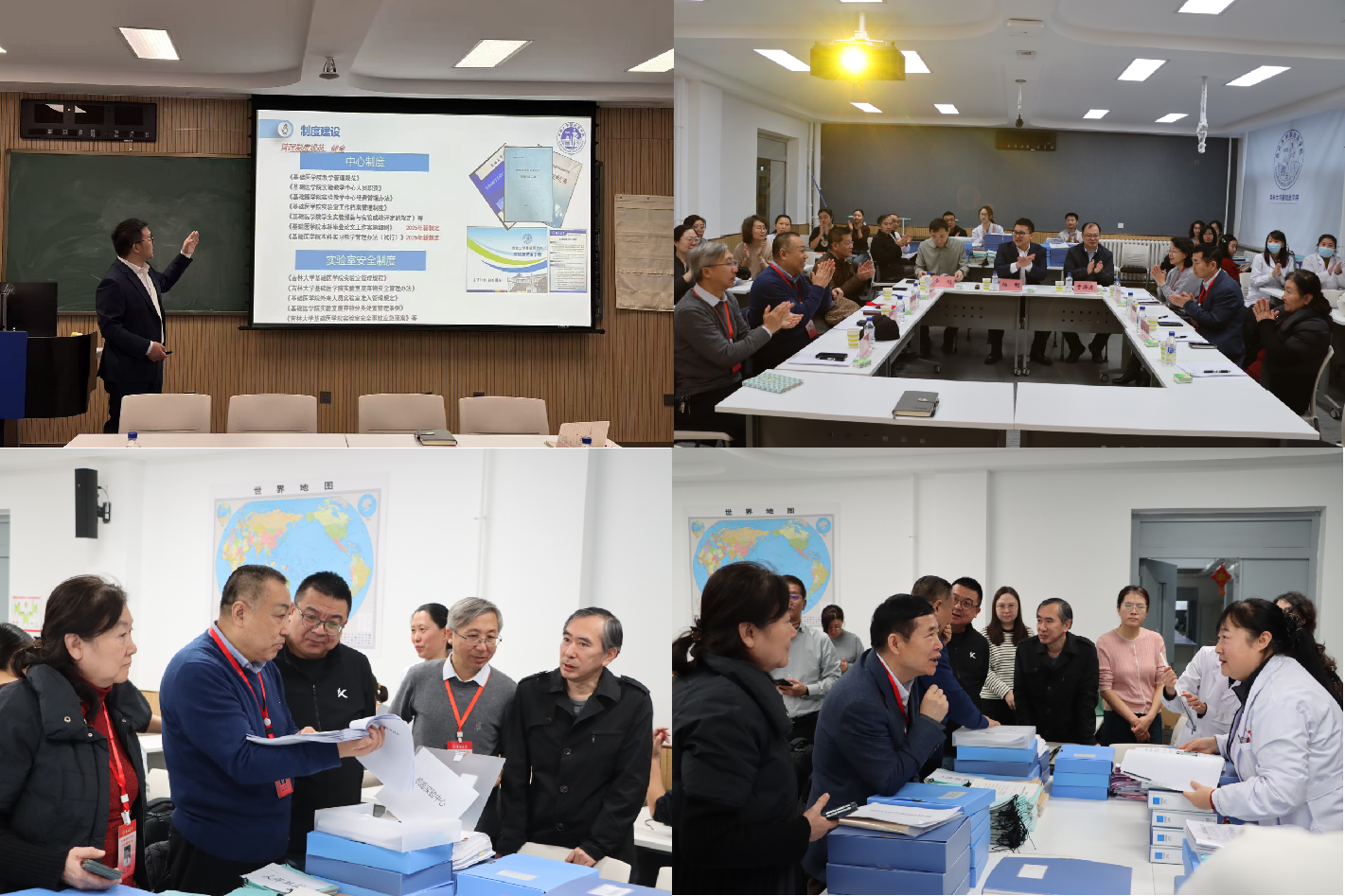 专家组还对学院6个实验教学中心的教学档案进行了现场查阅与督导。通过听取汇报、座谈交流和材料调阅,专家组全面了解了基础医学院实践教学的现状与存在问题。检查过程中,专家组充分肯定了学院在实践教学体系构建与安全管理方面取得的成效,并就进一步优化教学资源配置、强化跨学科实践能力培养等提出了指导性意见。
