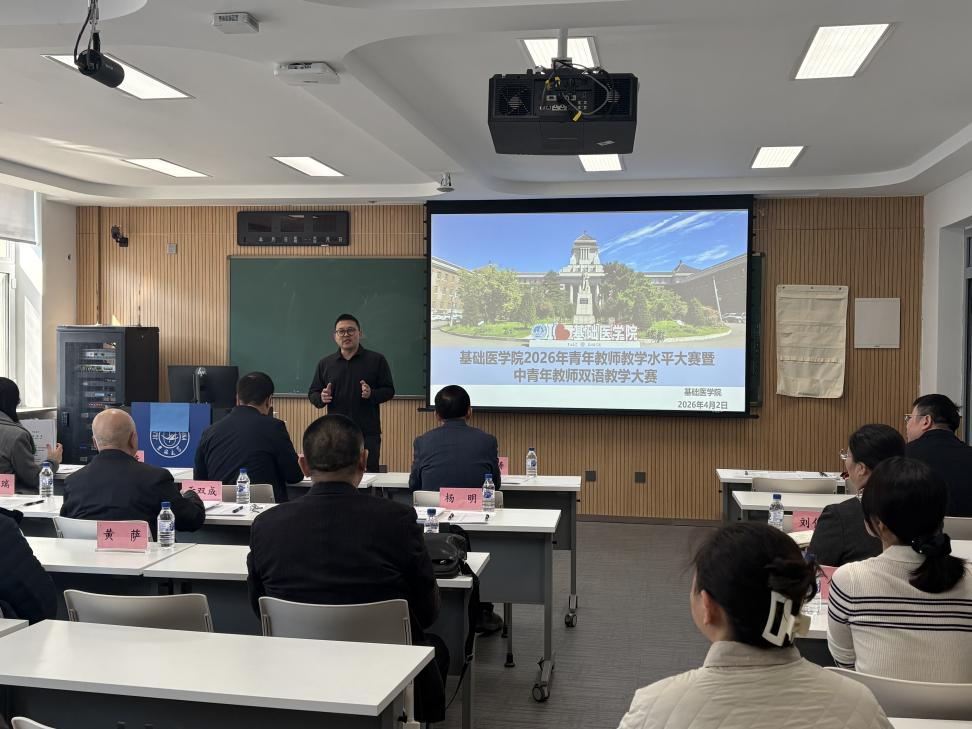 为深入贯彻立德树人根本任务,全面提升青年教师教学能力与教学水平,推动教育教学改革创新,促进人才培养国际化发展,提升双语教学质量,基础医学院于4月2日上午8:30成功举办2026年青年教师教学水平大赛暨中青年教师双语教学大赛。