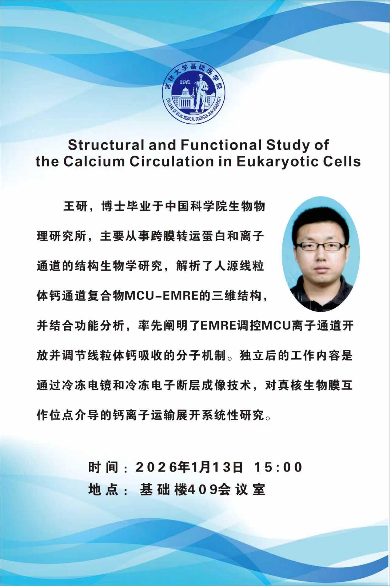 报告题目:Structural and Functional Study of the Calcium Circulation in Eukaryotic Cells